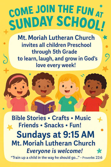 Mt Moriah is pleased to offer Sunday School classes for the whole family.