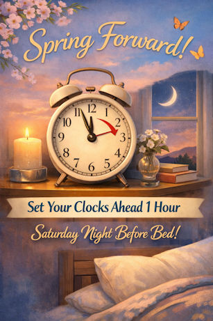 Clocks forward 1 Hr Sat Night
